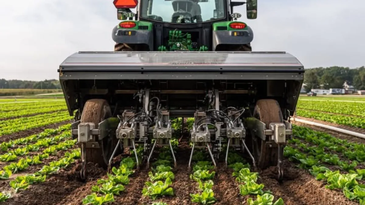 Stout AI cultivator reduces labor and herbicide use while tracking plant counts, spacing, maturity, and generating field maps for harvest predictions.